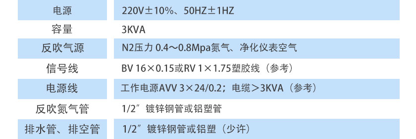 N2壓力 0.4~0.8Mpa氮氣、凈化儀表空氣