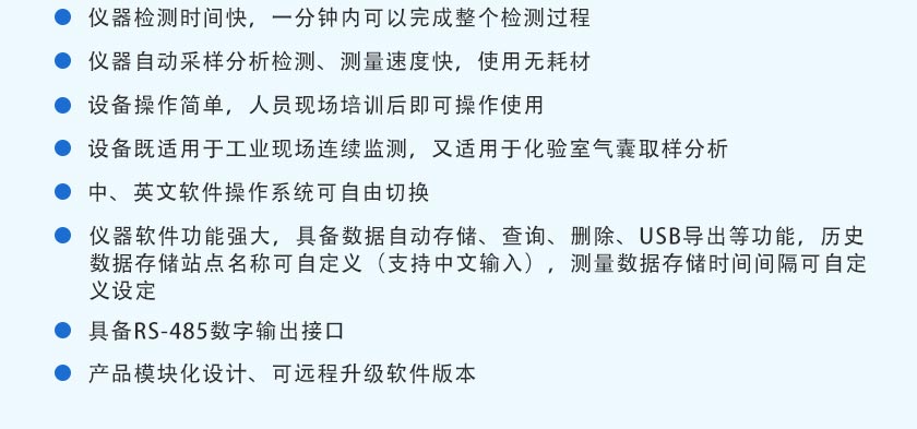SO2、NO、NO20~100mg/m3;O20~25%;CO0~100mg/m3;