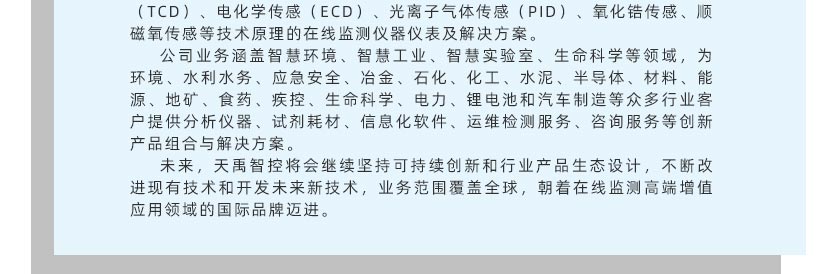 • 在線煤氣分析系統 TY-8300 TY-8300型煤氣在線分析系統是天禹智控自主研發新型在線監測系統,該產品基于非分光紅外(NDIR)氣體分析技術、長壽命電化學傳感技術以及基于MEMS的熱導技術,可同時在線測量煤氣的熱值,以及CO、CO2、CH4、H2、O2、CnHm等氣體的體積濃度。預處理系統采用冷干法設計,關鍵部件采用原裝進口,可根據現場不同的工況條件,為客戶定制解決方案,保證分析系統的可靠運行。