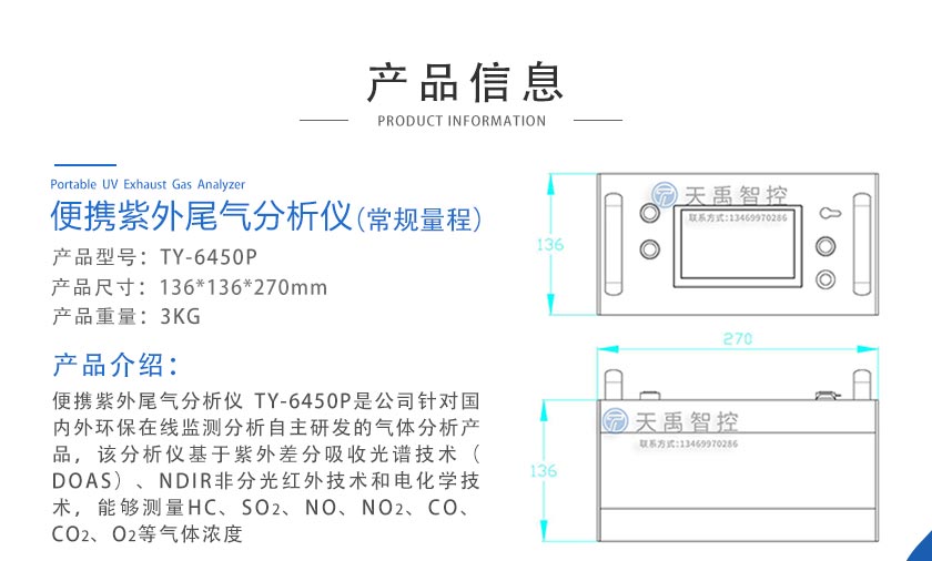 便攜紫外尾氣分析儀(常規量程) TY-6450P