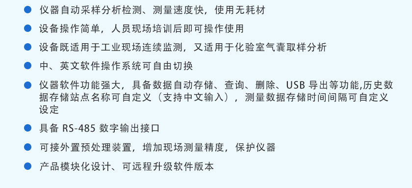 采用自主知識產(chǎn)權(quán)的NDIR非分光紅外技術(shù),主要用于測量氣體中的CO、CO2、CH4、C3H8、SO2、NO等氣體的體積濃度及熱值。全進(jìn)口傳感器、測量精度高、結(jié)構(gòu)簡單、維護(hù)方便,軟件功能強(qiáng)大,可拓展性強(qiáng)、現(xiàn)場實用性好,目前暢銷國內(nèi)外。