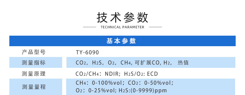 CO2,H2S,O2,CH4,可擴展CO, H2, 熱值
