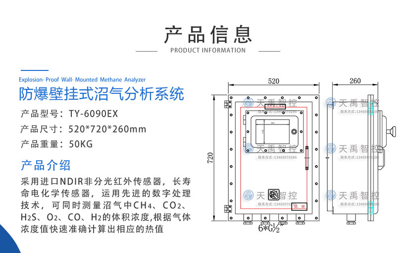 TY-8200型沼氣在線分析系統(tǒng)是天禹智控自主研發(fā)新型在線監(jiān)測系統(tǒng),該產(chǎn)品基于非分光紅外(NDIR)氣體分析技術(shù)、長壽命電化學(xué)傳感技術(shù),同時測量沼氣中CH4、CO2、H2S、O2等氣體的體積濃度。預(yù)處理系統(tǒng)采用冷干法設(shè)計,關(guān)鍵部件采用原裝進口,可根據(jù)現(xiàn)場不同的工況條件,為客戶定制解決方案,保證分析系統(tǒng)的可靠運行。