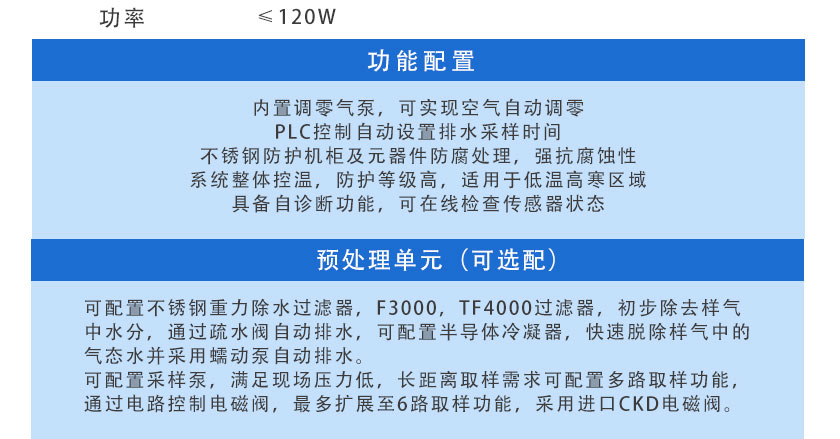 可配置采樣泵,滿足現(xiàn)場壓力低,長距離取樣需求可配置多路取樣功能,通過電路控制電磁閥,最多擴展至6路取樣功能,采用進口CKD電磁閥。 |