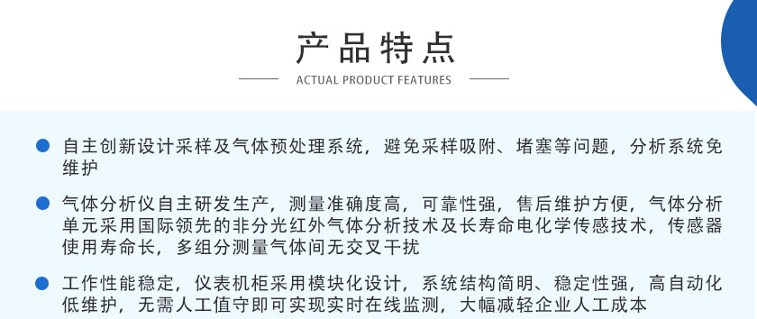 • 在線紅外氣體分析儀 TY-6300 在線紅外氣體分析儀TY-6300采用自主知識產權的NDIR非分光紅外技術,主要用于測量CO、CO2、CH4、C3H8、SO2、NO等氣體的體積濃度及熱值。適用于鋼鐵、化工、煤氣化、生物氣化、節能監測、能效測評等領域,測量焦爐煤氣、高爐煤氣、轉爐煤氣、混合煤氣、發生爐煤氣、生物燃氣等可燃氣體不同成分的體積濃度和熱值。