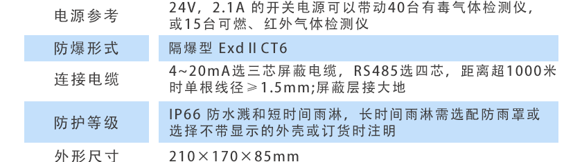 24V,2.1A 的開關(guān)電源可以帶動(dòng)40臺有毒氣體檢測儀,或15臺可燃、紅外氣體檢測儀 |