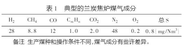 由表1可以看出 典型的蘭炭焦爐煤氣中N2含量占了總量的48%,H2和CH4組分只占到28%和8.8%,熱值約7113~8368 kJ/Nm3,C0大于10% 即氮含量高、氫含量低、熱值低、CO含量大于10%,因此,不宜直接作為民用燃氣,因此最好作為工業燃氣使用。