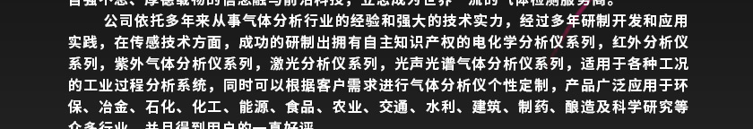 • 在線紅外氣體分析儀 TY-6300 在線紅外氣體分析儀TY-6300采用自主知識產權的NDIR非分光紅外技術,主要用于測量CO、CO2、CH4、C3H8、SO2、NO等氣體的體積濃度及熱值。適用于鋼鐵、化工、煤氣化、生物氣化、節能監測、能效測評等領域,測量焦爐煤氣、高爐煤氣、轉爐煤氣、混合煤氣、發生爐煤氣、生物燃氣等可燃氣體不同成分的體積濃度和熱值。