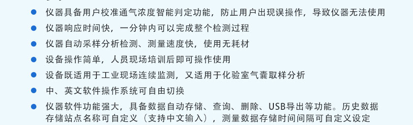 11)設備既適用于工業現場連續監測,又適用于化驗室氣囊取樣分析。