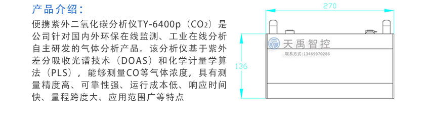便攜紫外二氧化碳分析儀TY-6400p(CO2)是公司針對國內外環保在線監測、工業在線分析自主研發的氣體分析產品。該分析儀基于紫外差分吸收光譜技術(DOAS)和化學計量學算法(PLS),能夠測量CO等氣體濃度,具有測量精度高、可靠性強、運行成本低、響應時間快、量程跨度大、應用范圍廣等特點。 產品廣泛應用于燃煤發電廠、垃圾發電廠、水泥廠、玻璃廠、石灰廠、陶瓷廠、燒結、焦爐、脫硫工藝、脫硝工藝等尾氣排放監測和過程控制.